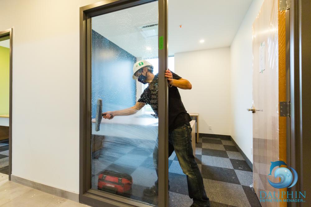 Après des travaux de construction ou de rénovation, l’équipe effectue un nettoyage complet des lieux afin de les rendre propres, sécuritaires et prêts à être occupés.