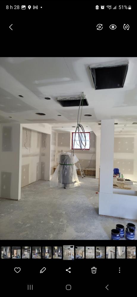 Application professionnelle pour murs et plafonds. Un fini lisse, sans défaut, prêt à recevoir la peinture.