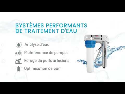 Traitement d’eau, Adoucisseur d’eau, Analyse d’eau, Ultraviolet, Forage de puits, Pompes, Filtre, Eau sulfureuse, Souffre, Eau ferreuse, Eau dure, Eau calcaire, Pompes de puits, Réparation de pompe, Osmose, Pompe fosse septique